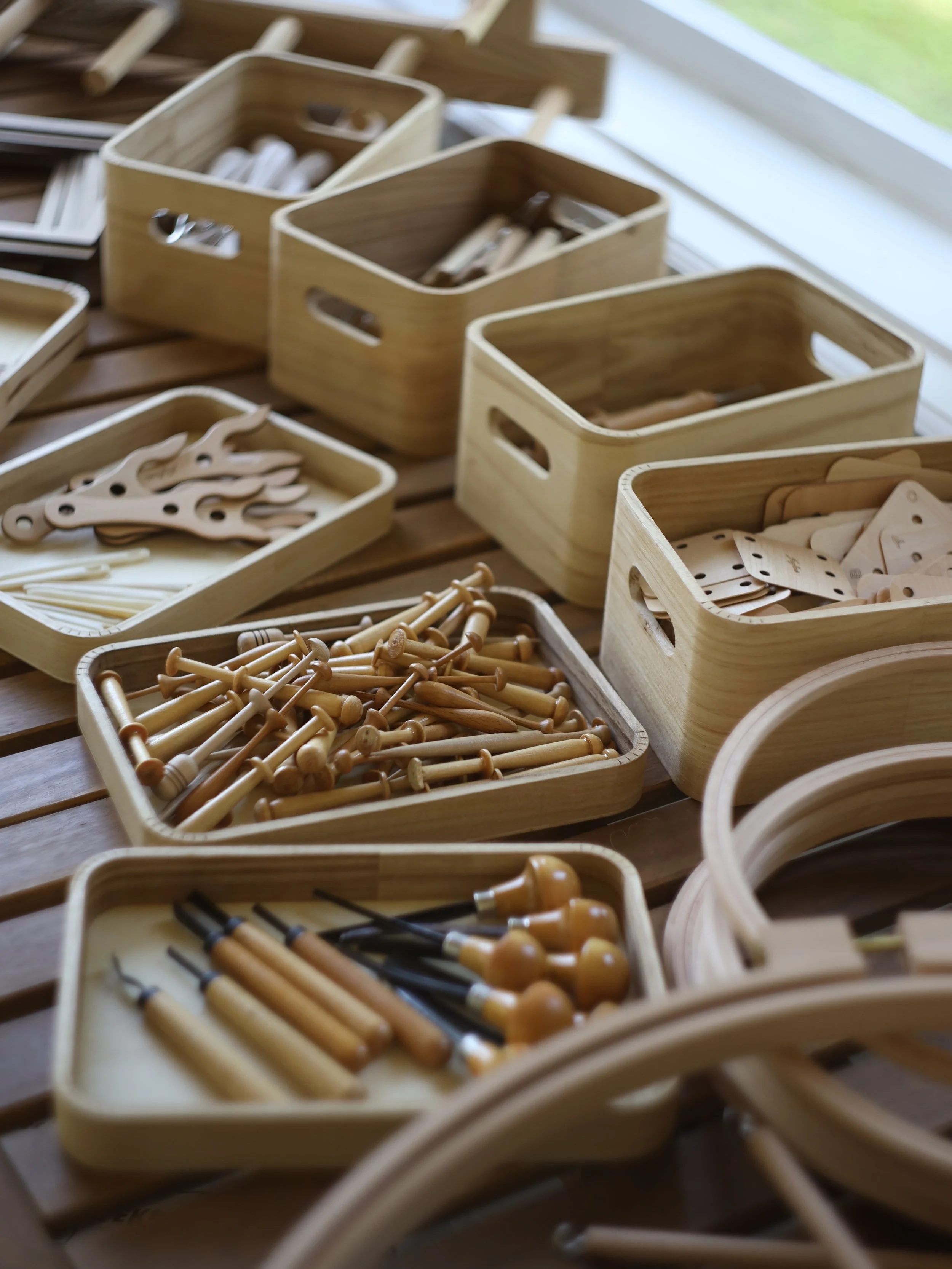 Tekstiilikeskus pakub laenutamiseks erinevaid professionaalseid tekstiiltööriistu. Panustame igapäevaselt oma tekstiilitööriistade raamatukogu laiendamisse ja kaasajastamisse. Meile võib annetada ka oma töövahendeid, mida enam ei vajata.